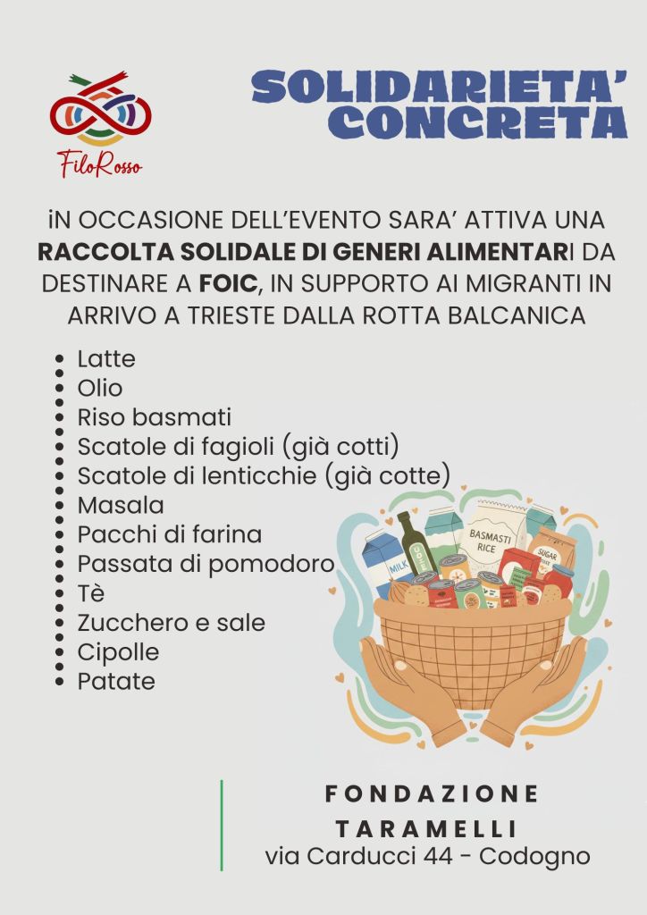Come sempre, alle parole abbiamo voluto affiancare un gesto concreto. Durante la serata abbiamo attivato una raccolta alimentare a favore dell’associazione FOIC di Fiorenzuola d’Arda, impegnata ad aiutare i migranti che arrivano a Trieste lungo la rotta balcanica.